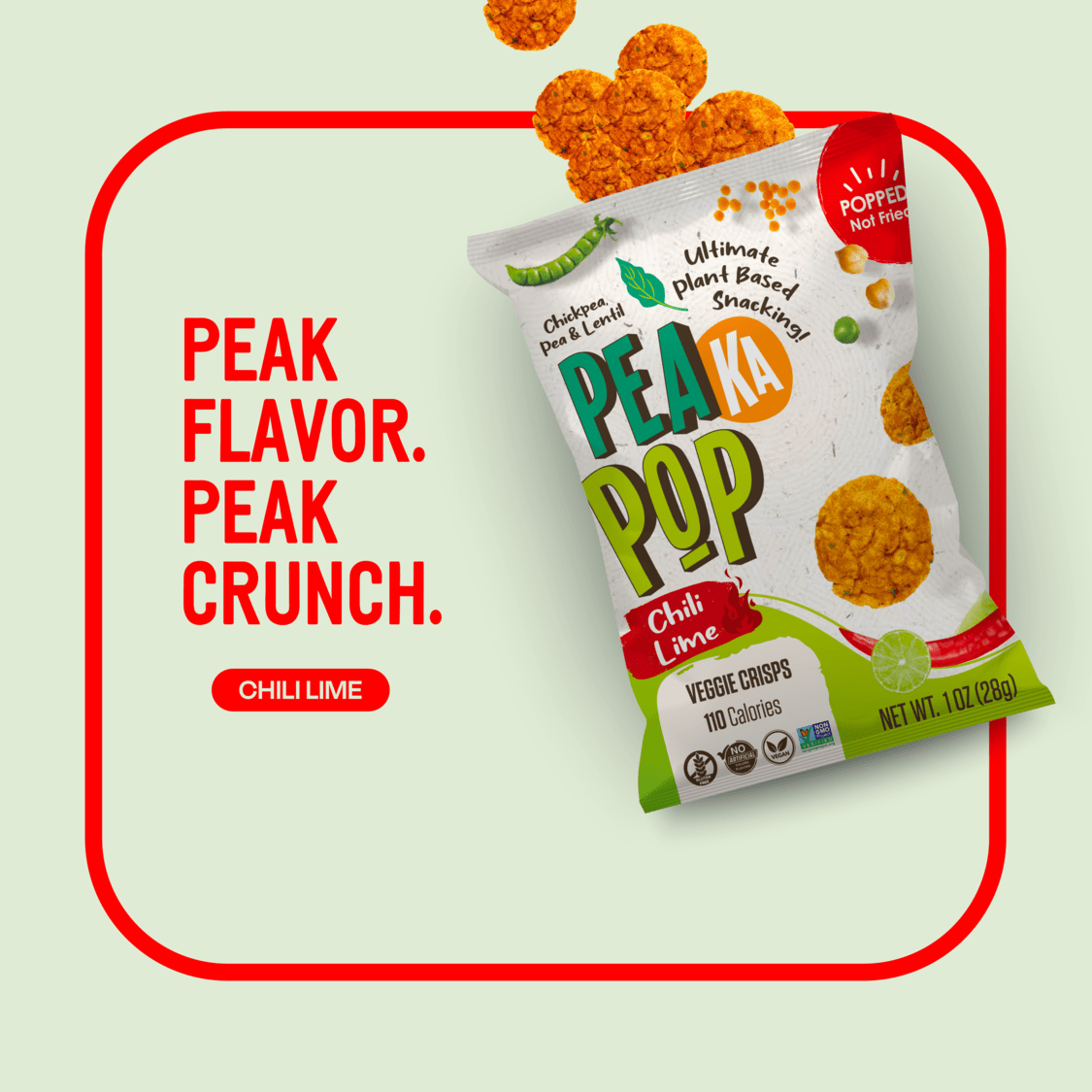 PeaKaPop starts with plant-based ingredients like chickpeas and lentils, popped with air for that perfectly light, satisfying crunch. We make every batch in our own facility, so we can keep the quality high and the flavor just right.